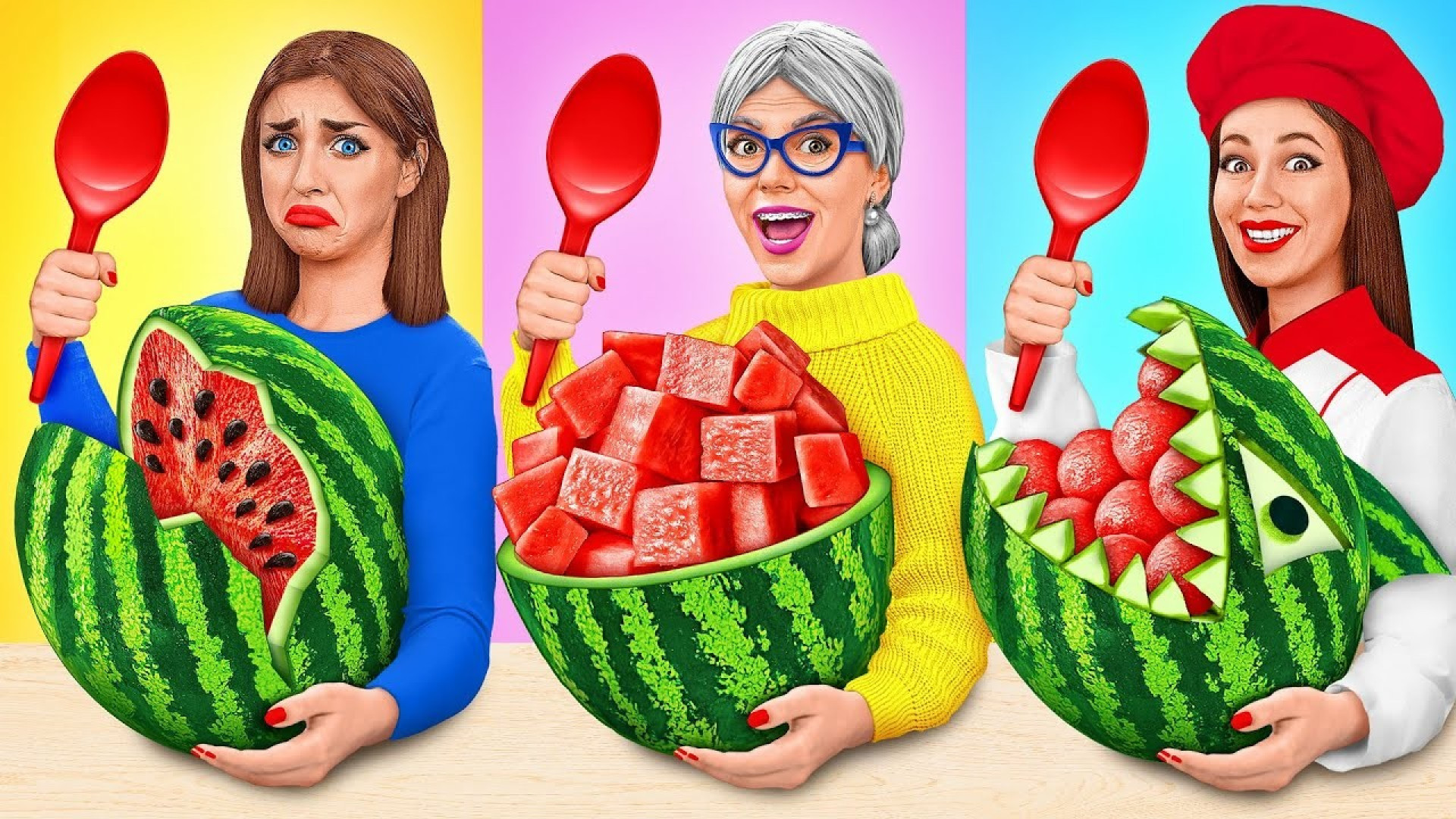 چالش غذایی خنده دار: چالش آشپزی من در مقابل مادربزرگ | سرگرمی کودکان و بانوان