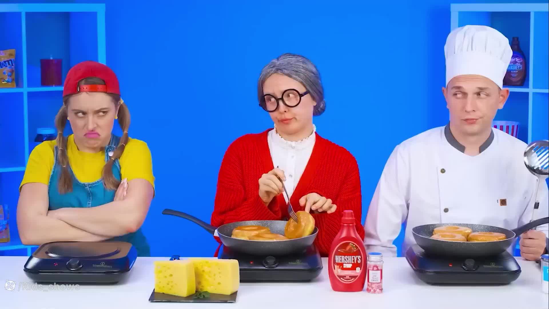 چالش غذایی خنده دار: چالش خنده دار دونات درست کردن بچه ها و مادربزرگ | سرگرمی کودکان و بانوان