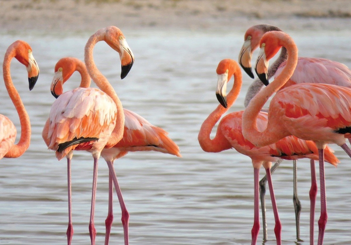 تصاویر دیدنی از رقص و حرکات جالب فلامینگوها در دریاچهی مهارلو شیراز