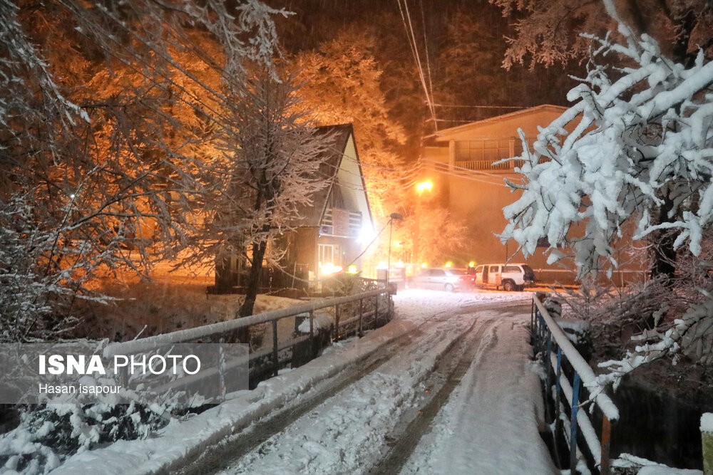 ترکیب زیبای بارش برف در سوادکوه، مازندران و همزمانی عبور قطار در شب برفی | 2 دی 1403