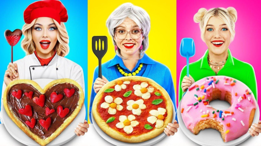 چالش آشپزی مادربزرگ و نوه : پخت دونات رنگی جذاب!