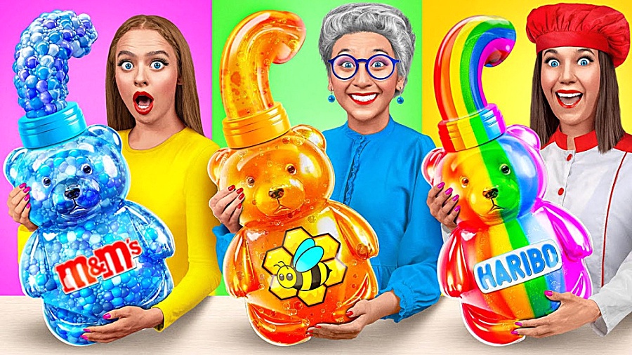 چالش آشپزی مادربزرگ و نوه ها: چالش غذایی پخت کیک رنگین کمانی سه نفره!