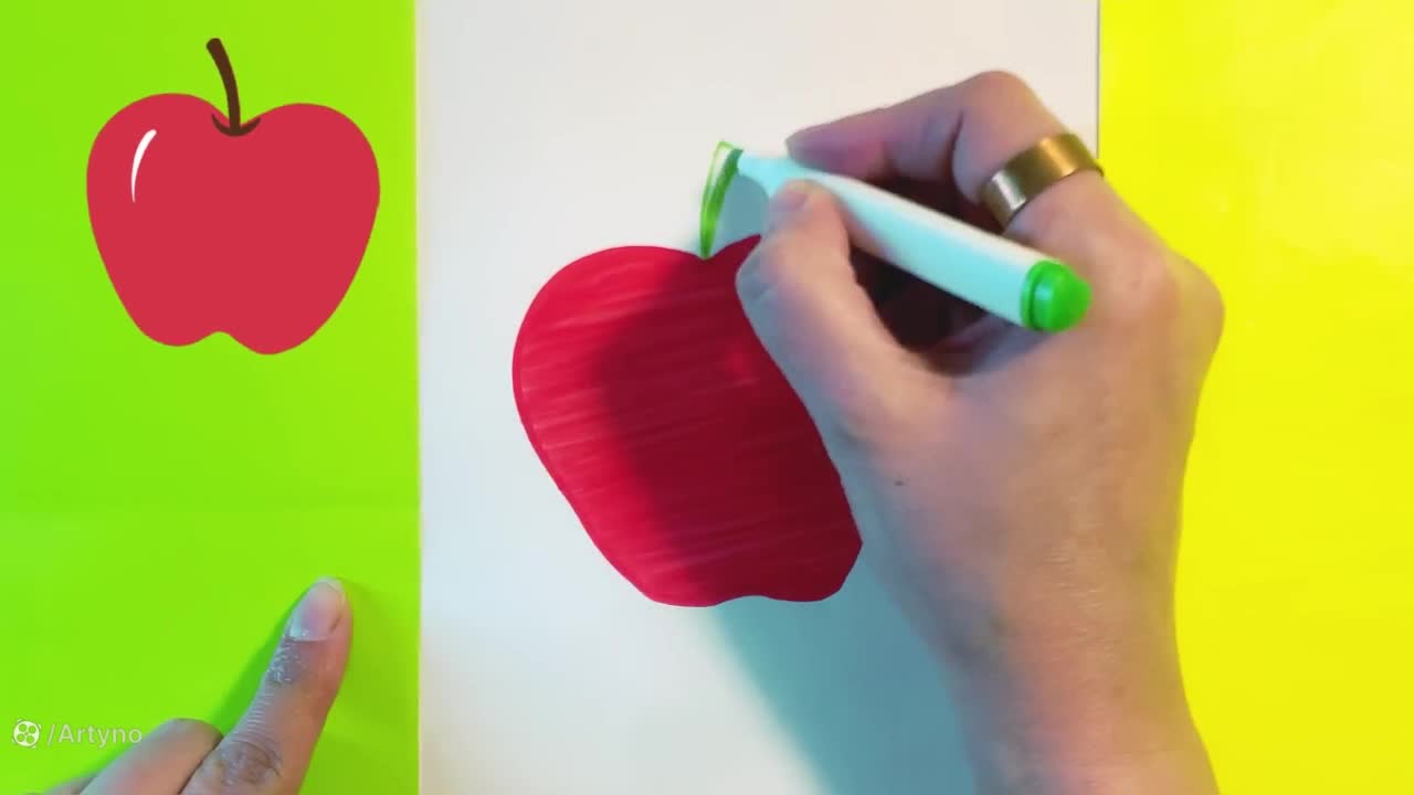 آموزش نقاشی سیب قرمز آسان / آموزش نقاشی سیب برای مدرسه