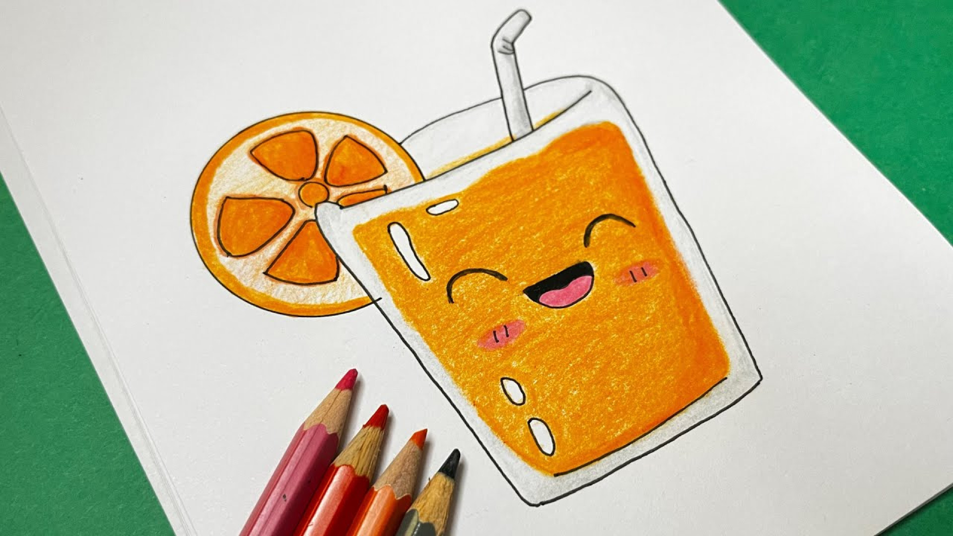 آموزش نقاشی ساده و آسان لیوان آب پرتقال / کاردستی کودک نقاشی