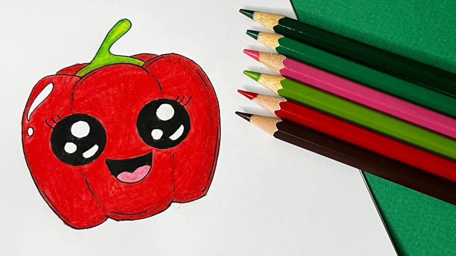 آموزش ساده و زیبای نقاشی فلفل دلمه ای فانتزی با مداد رنگی برای کودکان