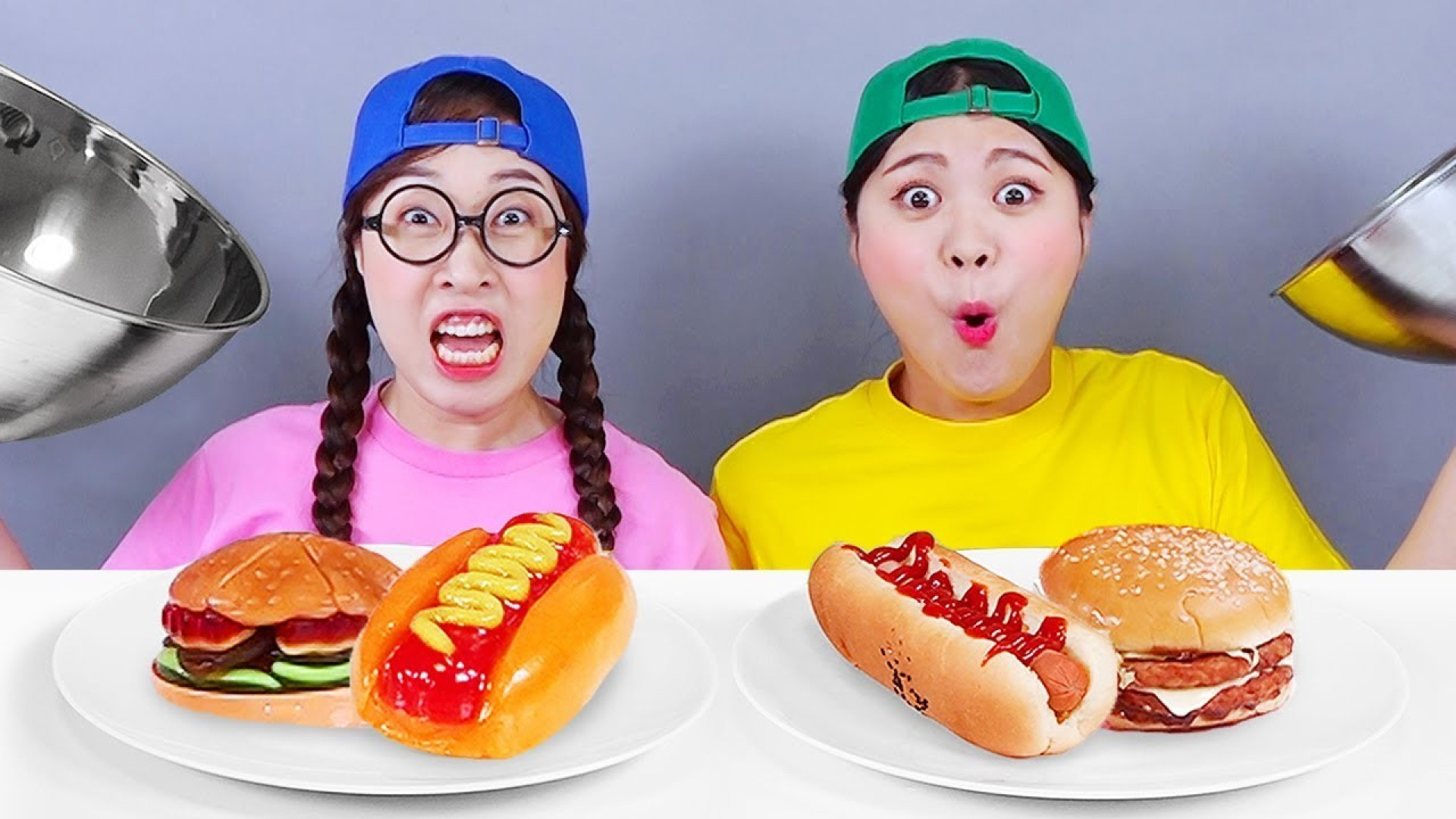 چالش غذایی اسمر جدید : چالش غذایی خنده دار : غذای واقعی در مقابل ژله شکلات