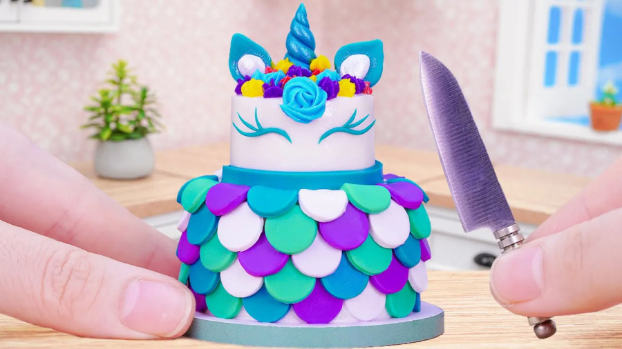 کیک شگفت انگیز مینیاتوری/ کیک یونیکورن مینیاتوری/ دستور تزیین کیک مینیاتوری