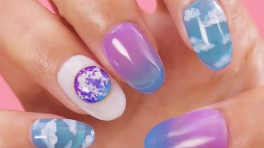 طراحی ناخن شیک و باکلاس با طرح آسمان و ابر Nail Design