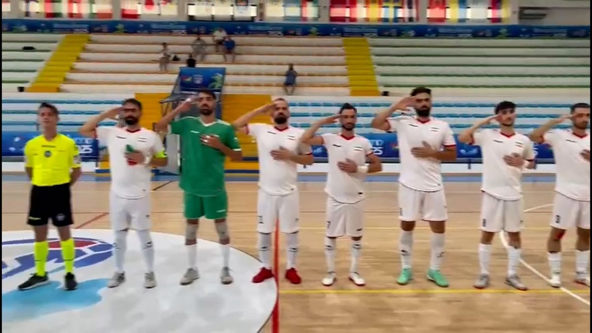 سلام نظامی ملی پوشان فوتسال ناشنوایان هنگام خواندن سرود ملی ایران