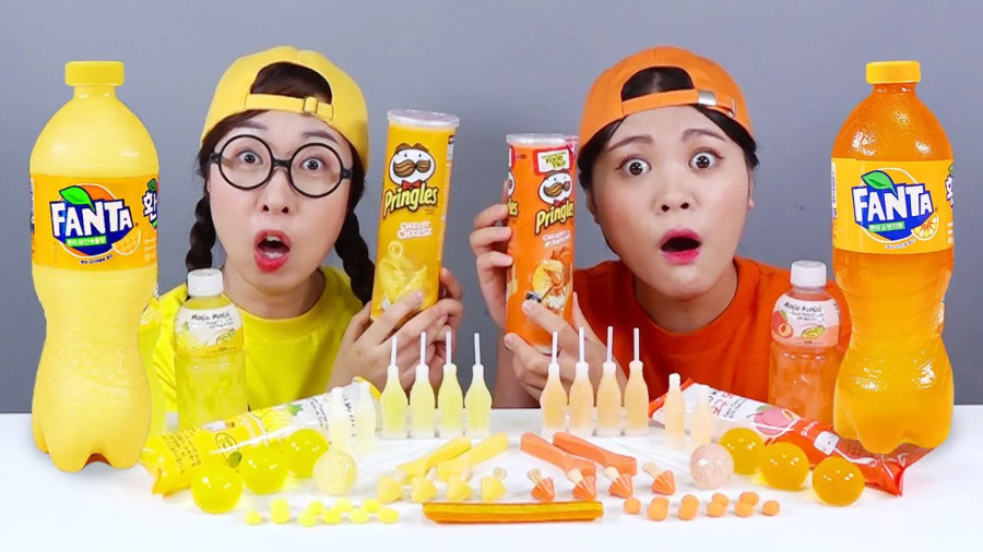 چالش غذای خنده دار چالش خوراکی نارنجی زرد | چالش خوراکی دونفره بانوان سرگرمی
