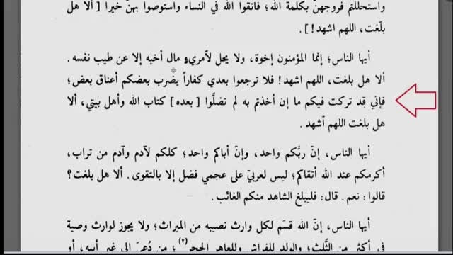 بيان حديث ثقلين توسط پيامبر در روز عيد قربان (کتاب الله و اهل بيتی) کتاب اهل سنت