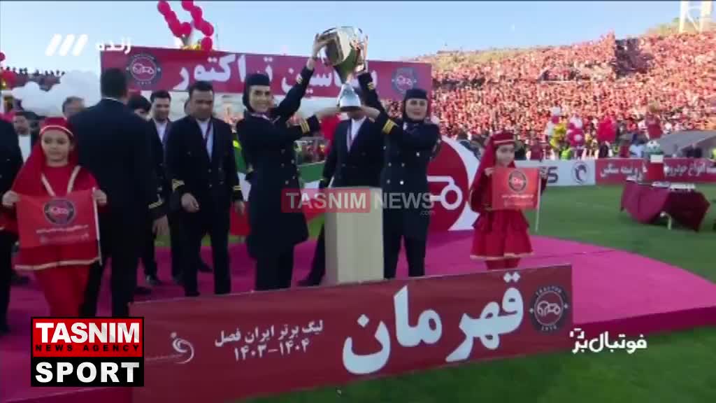 ببینید/ لحظه رونمایی جام قهرمانی تراکتور توسط دو بانو در ورزشگاه تبریز | 26 اردیبهشت 1404