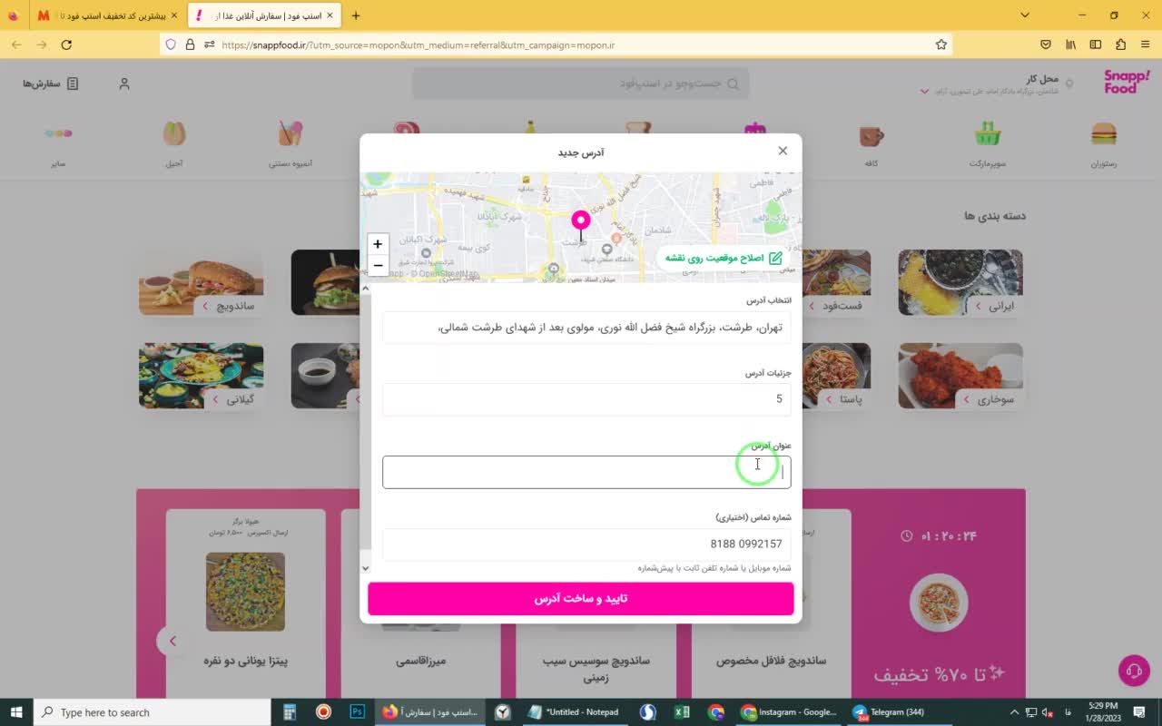 آموزش تصویری دریافت کد تخفیف اسنپ فود