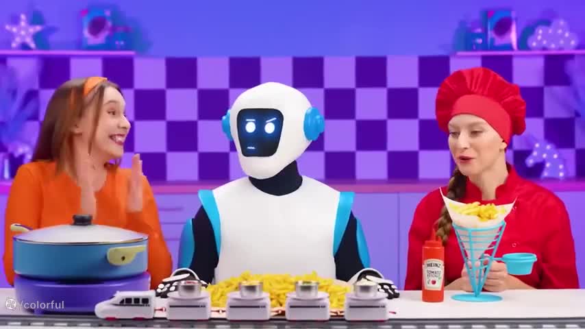 چالش غذایی خنده دار | چالش خوراکی طولانی | ربات و سیب زمینی سرخ کرده