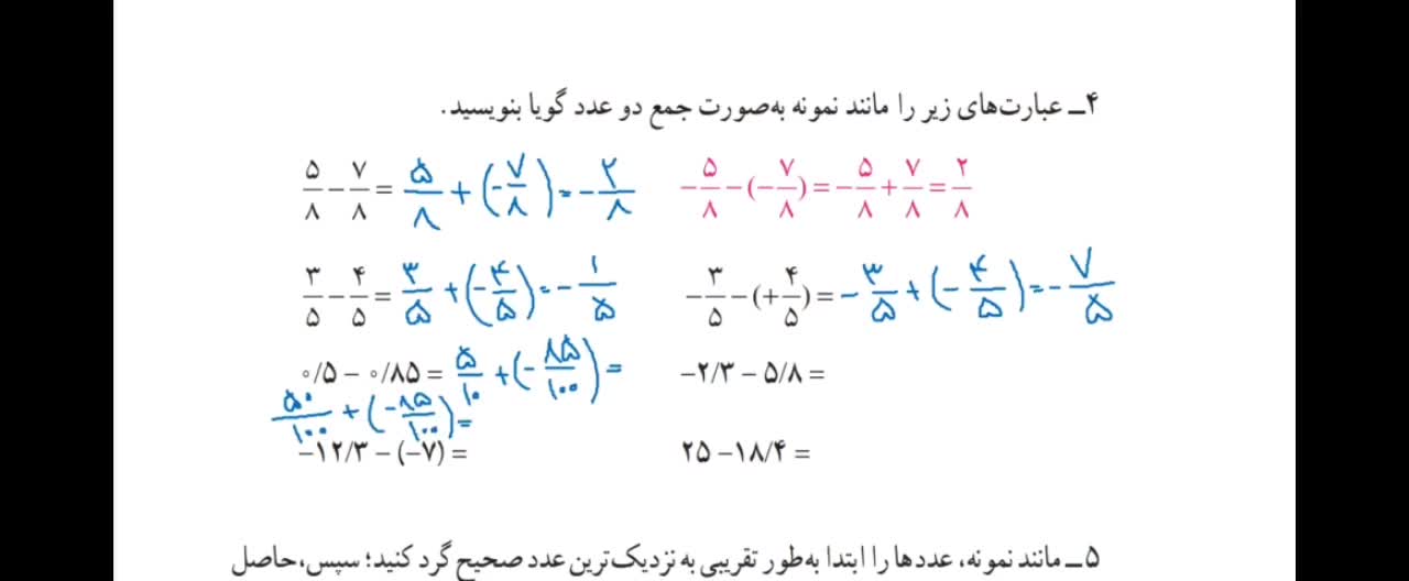 جواب صفحه ۱۰ و ۱۱ ریاضی هشتم ☑️ پاسخ فعالیت و کار در کلاس جمع و تفریق عددهای گویا