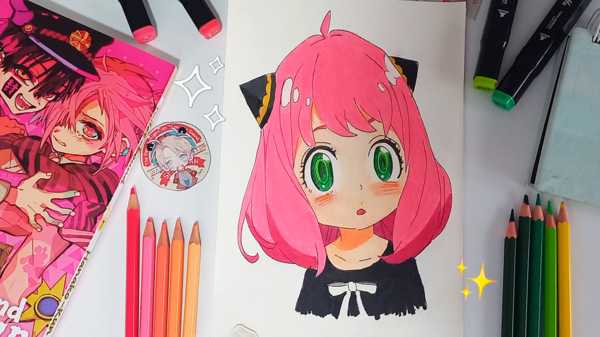 آموزش نقاشی انیمه آنیا با مدادرنگی مرحله به مرحله