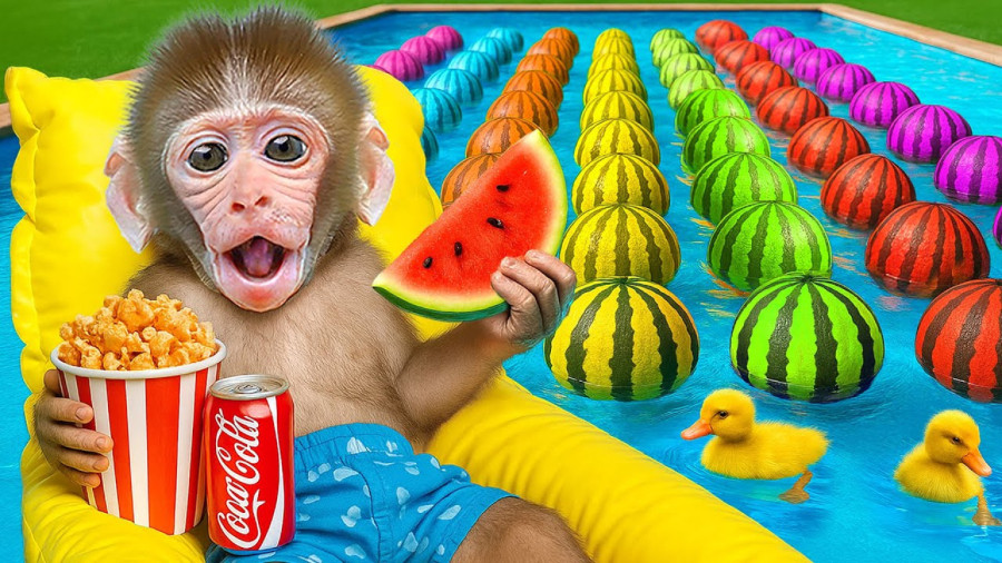 کارتون بچه میمون شیطون: میمون کوچولو در طبیعت ماهی رنگی میگیرد!