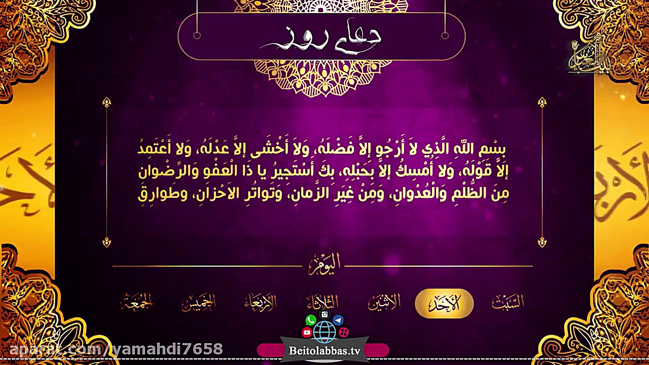 دعای روز یکشنبه با متن | ذکر روز یکشنبه با متن | 11 خرداد 1404