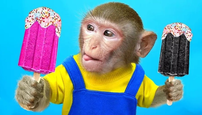 کارتون بچه میمون شیطون طولانی: میمون کوچولو و بستنی زغالی بدمزه!