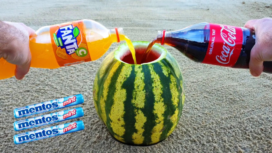 آزمایش :: هندوانه در مقابل بالون کوکاکولا، فانتا و منتوس :: سرگرمی علمی کودکان