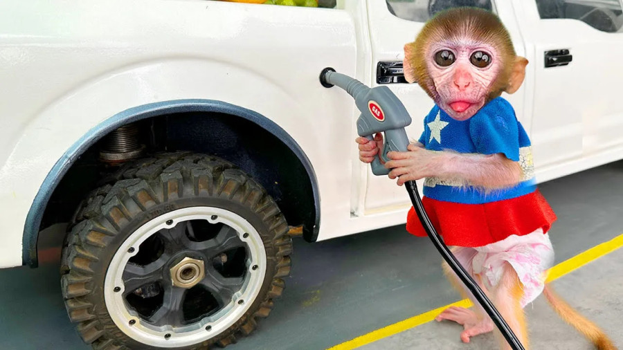 برنامه کودک بچه میمون جدید: میمون کوچولو و بنزین زدن ماشین!