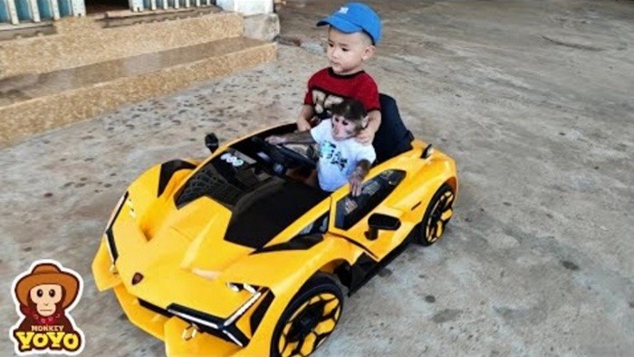 برنامه کودک بچه میمون جدید: ماشین سواری پسر بچه با میمون کوچولو!