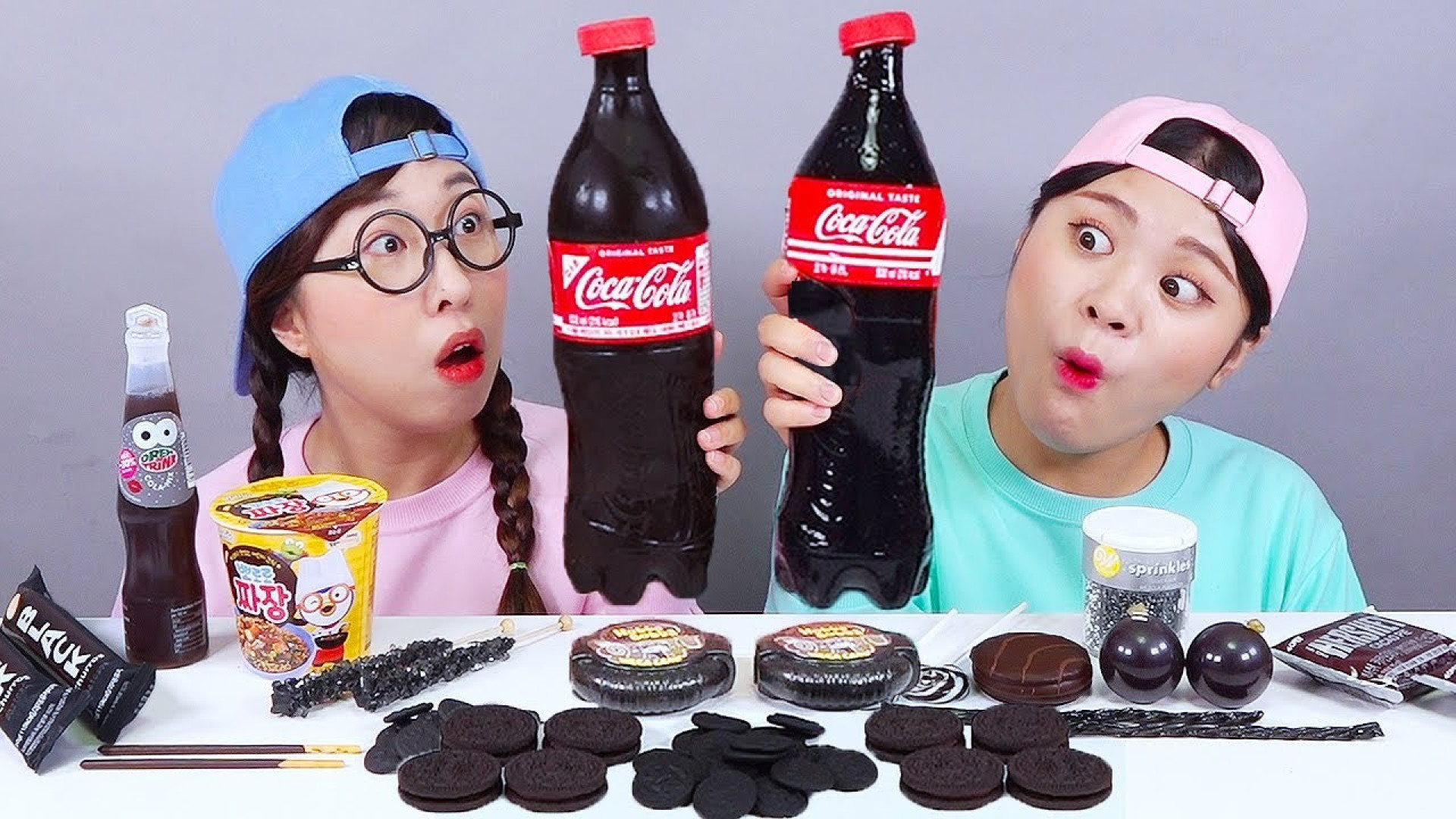 چالش غذا خوری جدید _ چالش غذایی دونا انگلیش _ دسر مشکی کولا ژله _ چالش خوراکی ها