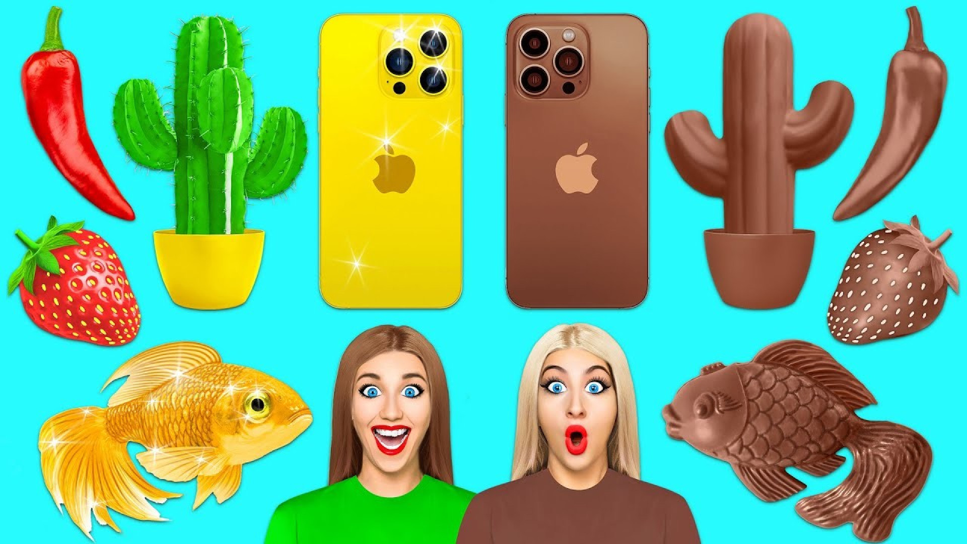 چالش غذایی جدید - چالش غذا خوری - چالش غذای واقعی در مقابل شکلات - تست طعم غذاها