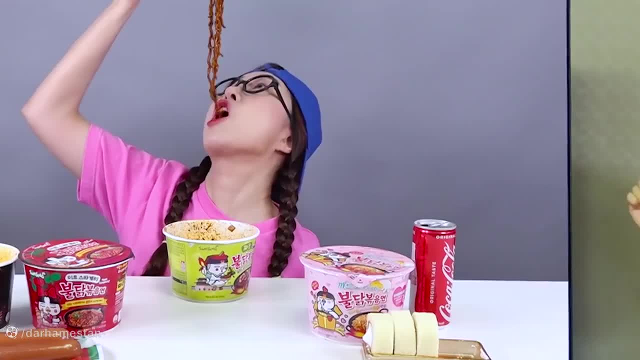 چالش غذایی خنده دار ، چالش غذایی دونا ، چالش غذا ، چالش نودل خوردن