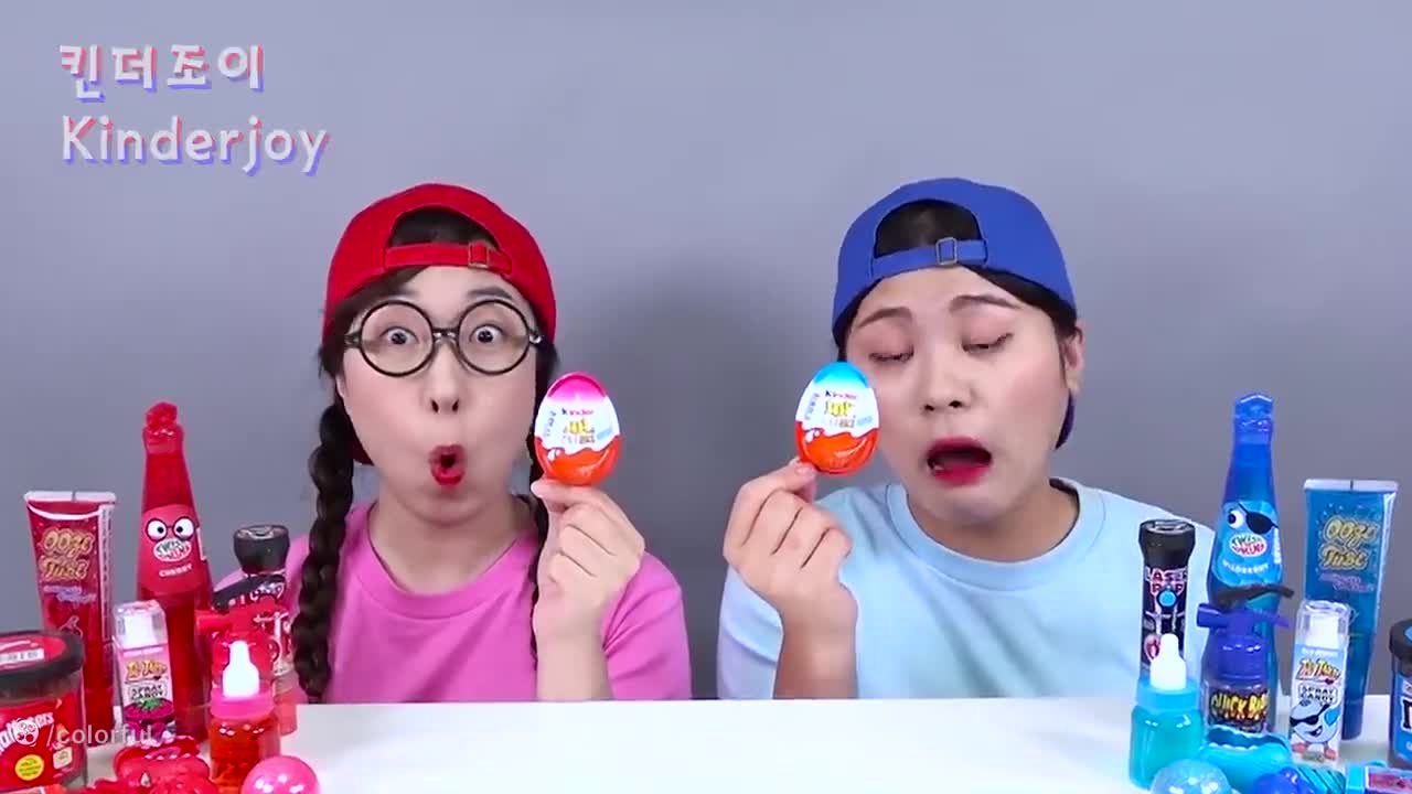 چالش غذای خنده دار خوراکی های قرمز و آبی | چالش خوراکی دو نفره بانوان سرگرمی