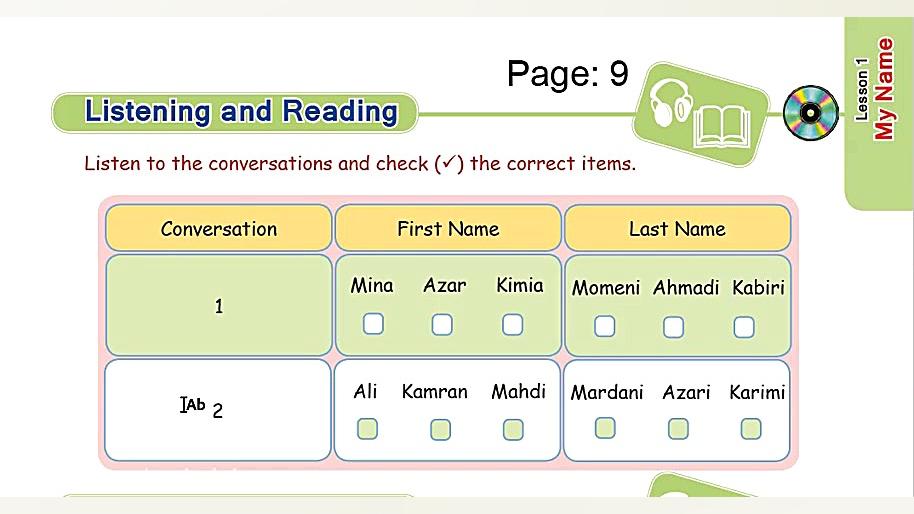 آموزش زبان انگلیسی پایه هفتم صفحه 9-قسمت اول