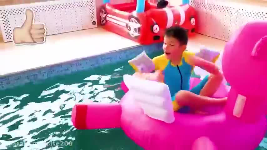 برنامه کودک ساشا و مکس / ساشا و مکس / بازی با سرسره آبی در استخر