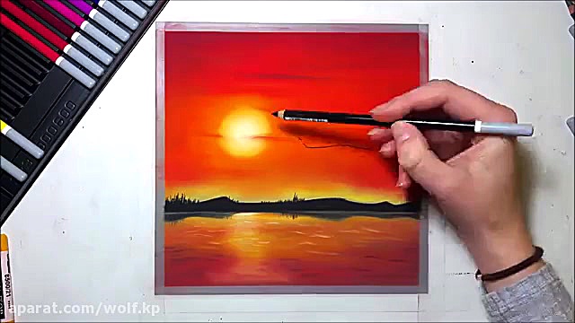 نقاشی زیبا با مداد شمعی و مداد رنگی