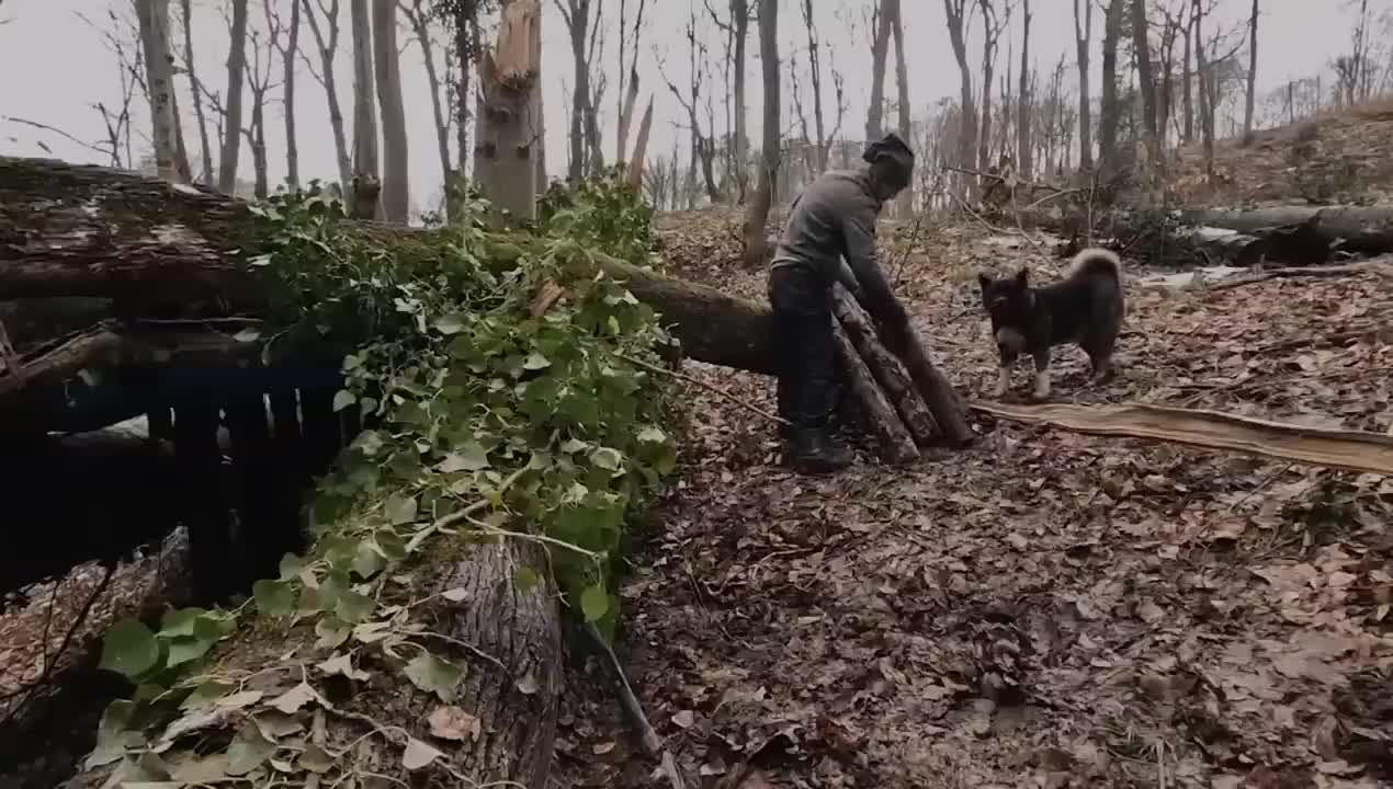 کمپینگ و ساخت کلبه جنگلی در تنه یک درخت قطور کهنسال