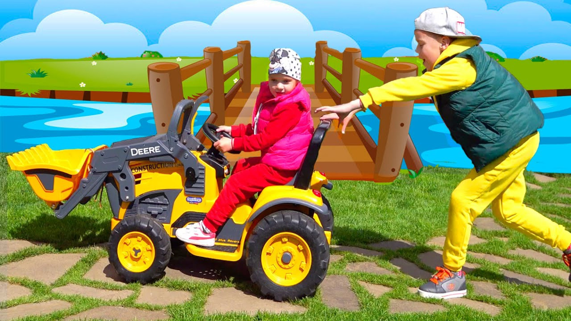 ماشین بازی کودکانه - بازی بچه ها با ماشین اسباب بازی تراکتور و کامیون کودک