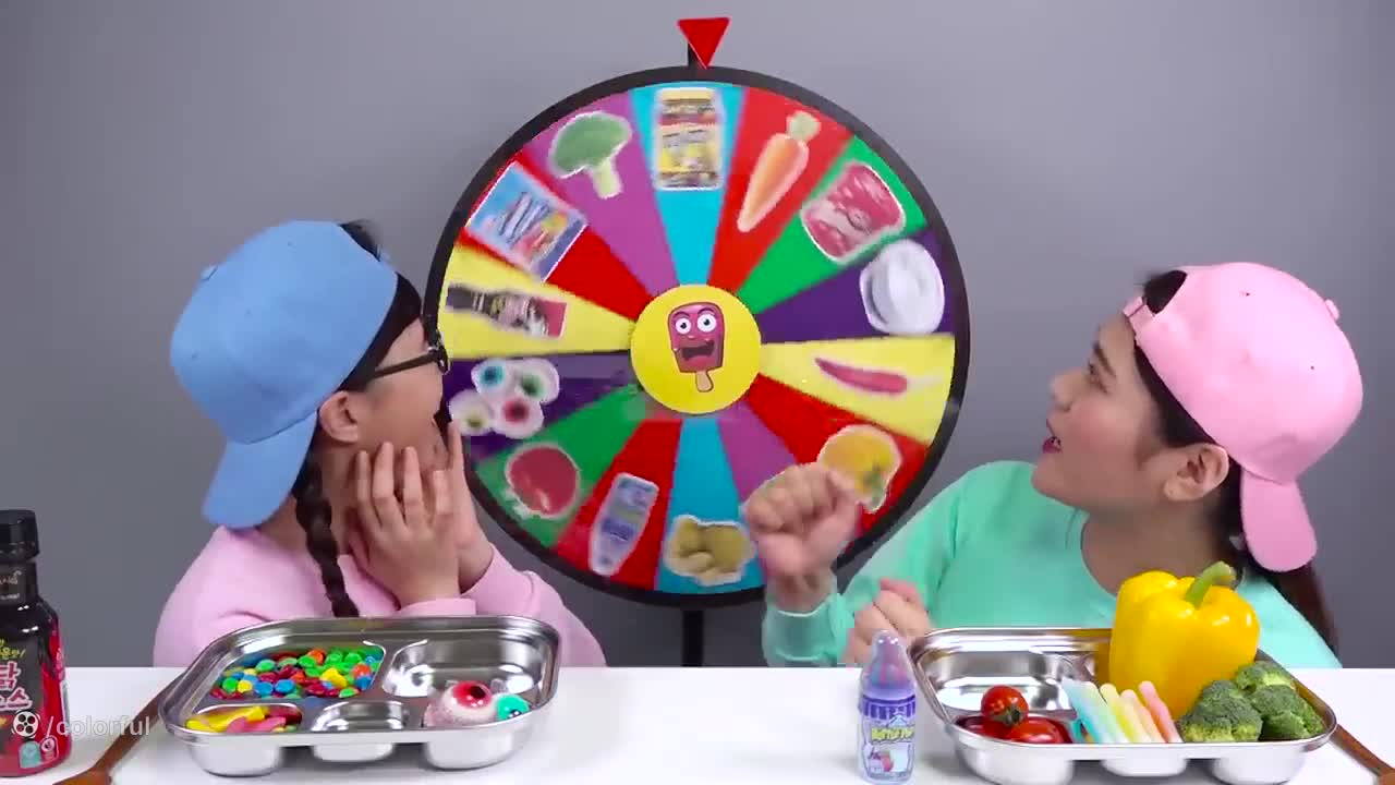 چالش غذای خنده دار چالش غذا با گردونه شانس | چالش خوراکی دو نفره بانوان سرگرمی