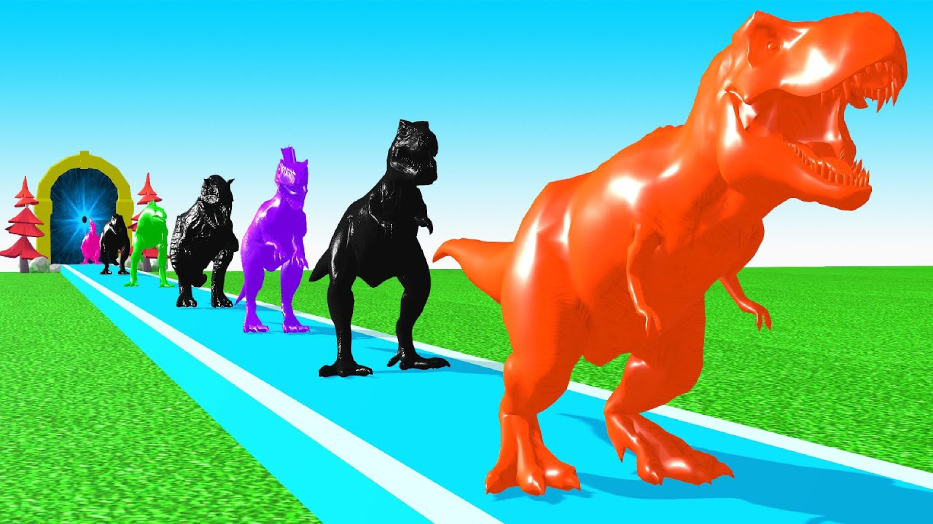 انیمیشن کارتون دایناسورها - عبور دایناسور تی رکس گیاهخوار و گوشتخوار از فواره آب