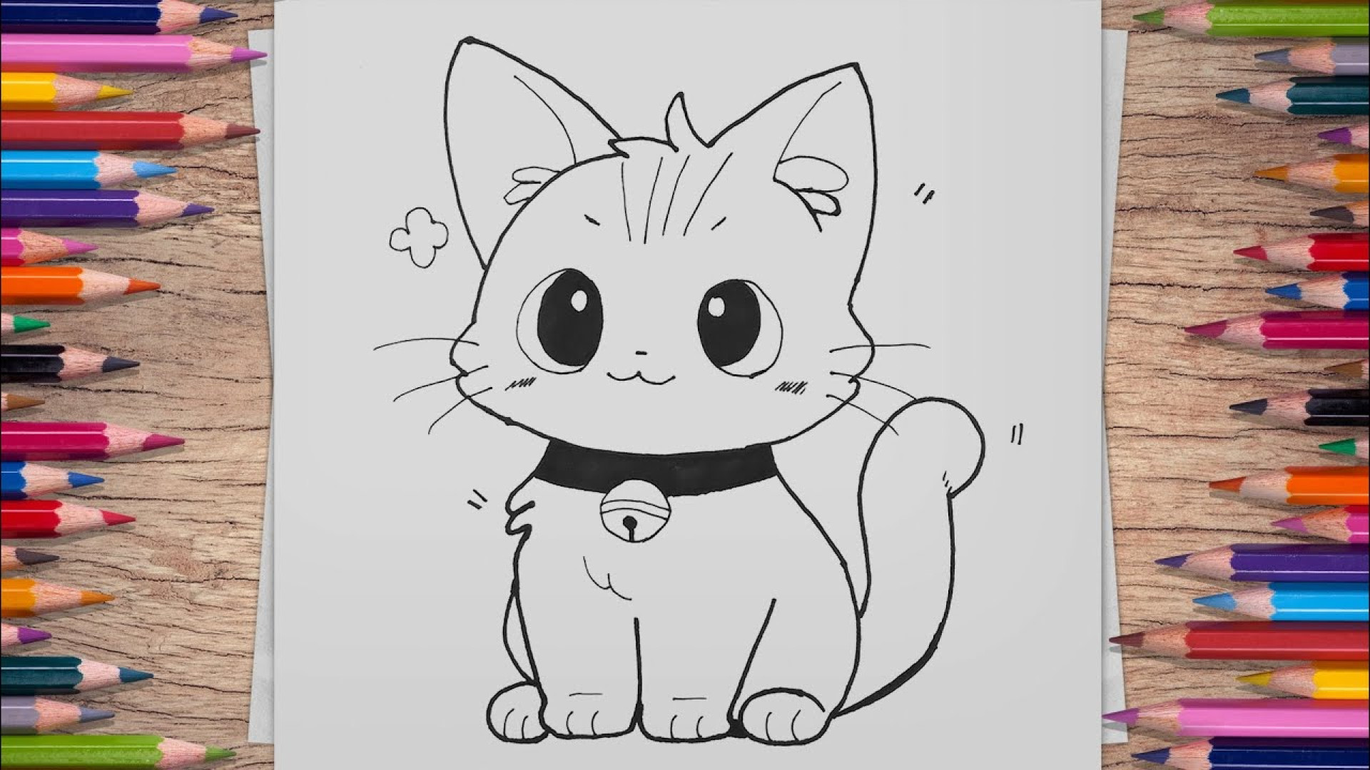 نقاشی کودکانه گربه بامزه برای پسرها و دخترها | مخصوص سنین ۳ تا ۱۰ سال