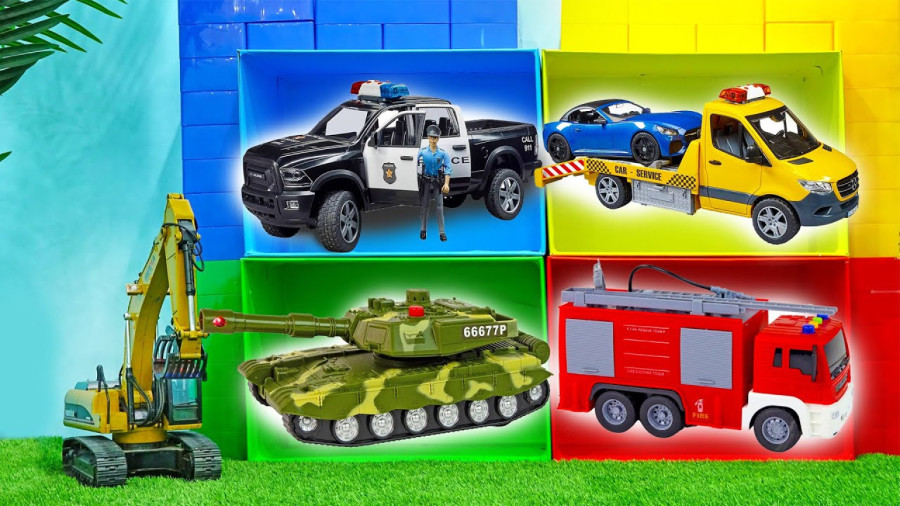 ماشین بازی با ماشین اسباب بازی طولانی | ماشین آتشنشانی و جرثقیل