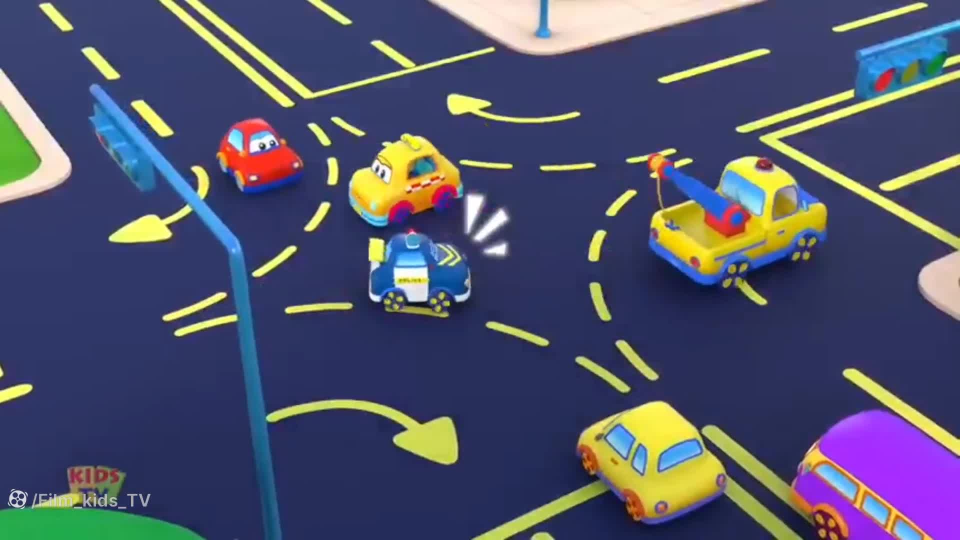 کارتون ماشین پلیس رنگارنگ کودکانه