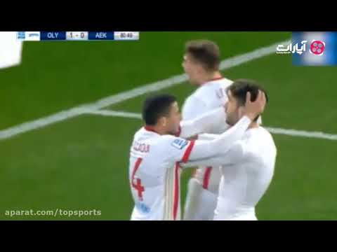 خوشحالی جالب کریم انصاری فرد روی گل اول تیم المپیاکوس