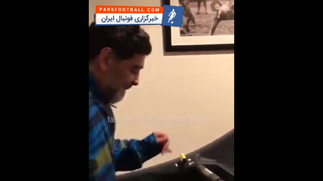 رقص مارادونا بر روی تردمیل همراه با آهنگ مخصوص