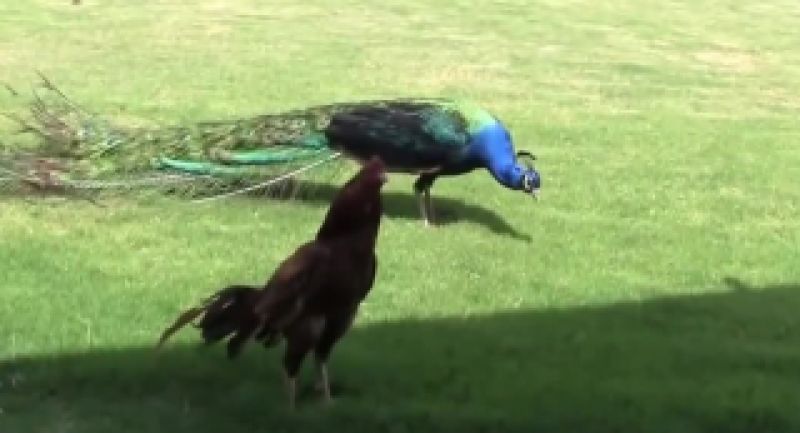 جدال جالب و تماشایی طاووس و خروس لاری