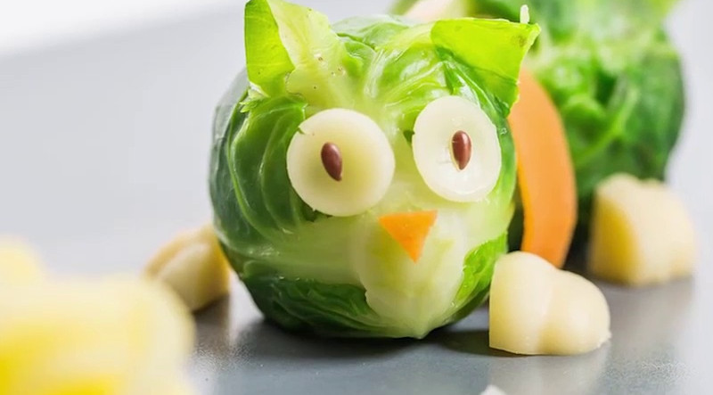 تزیین کلم بروکسل به شکل گربه | فیلم آشپزی