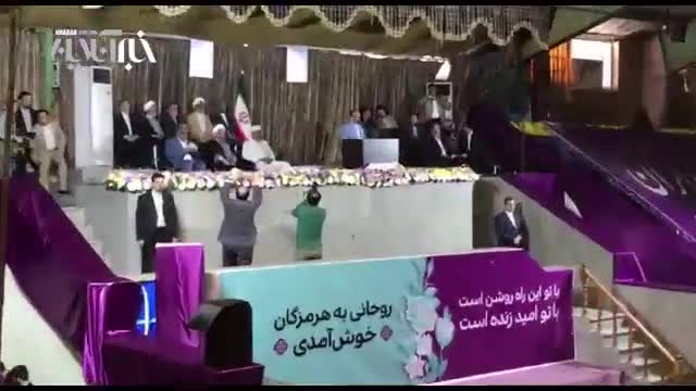 شعار مردم بندرعباس در استقبال از روحانی: آزادی اندیشه گازانبری نمیشه