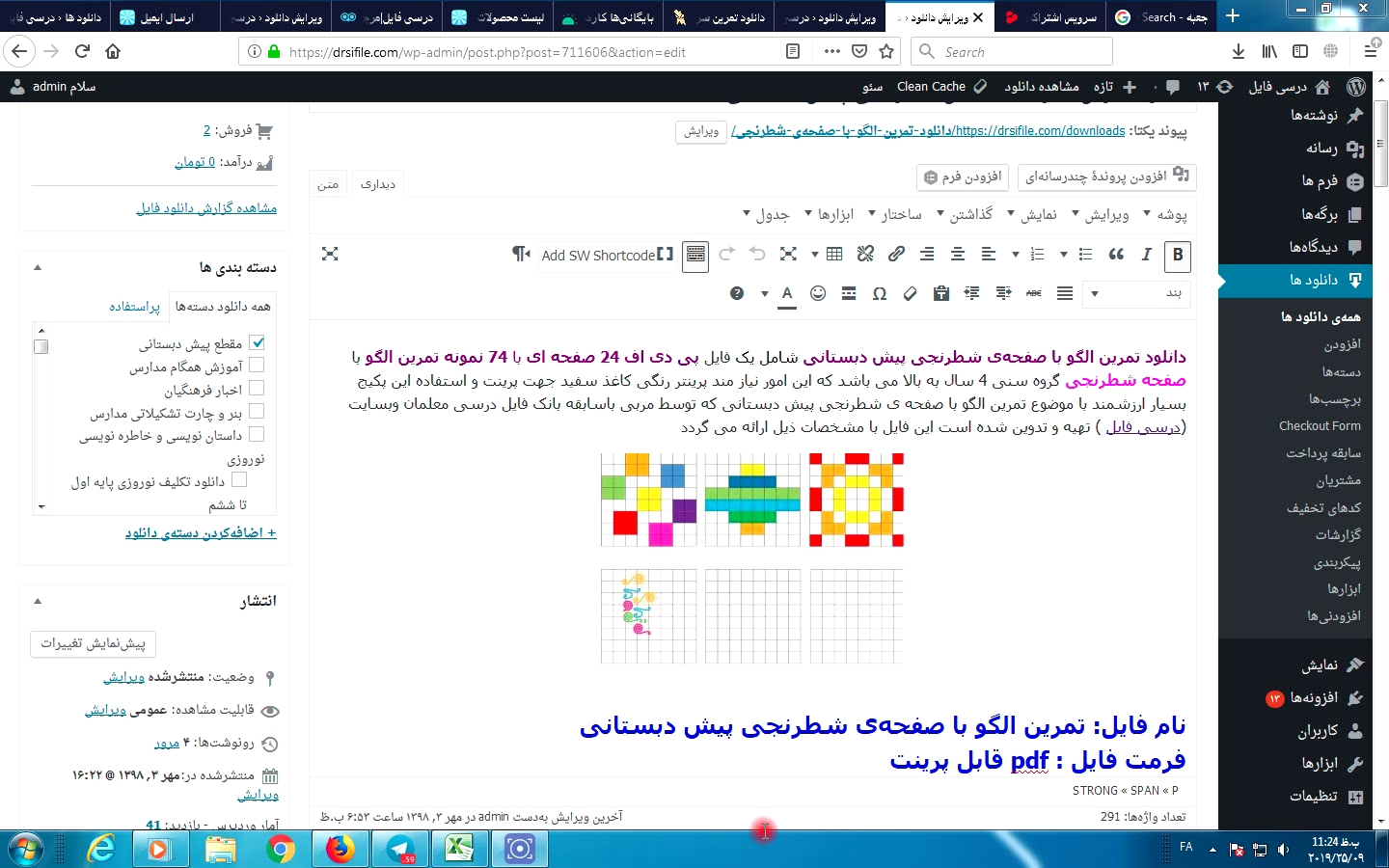 دانلود تمرین الگو با صفحهی شطرنجی پیش دبستانی