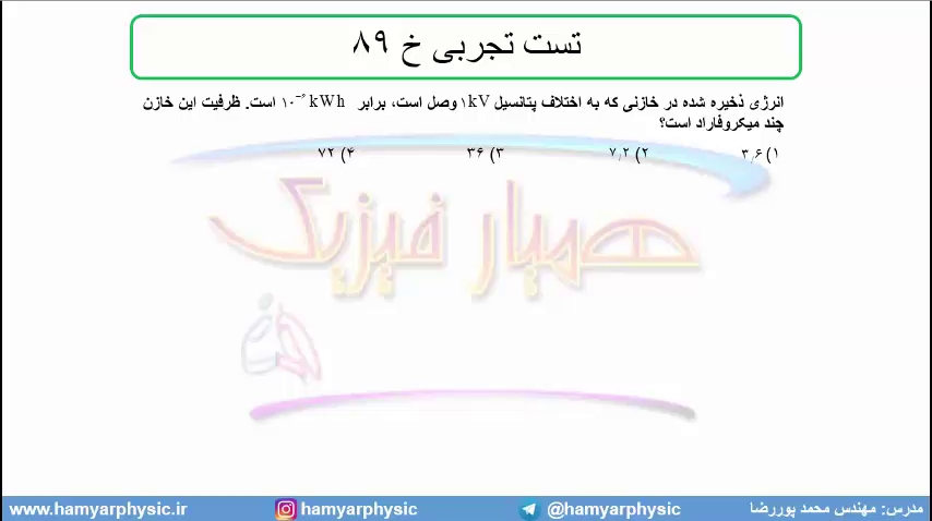 جلسه 79 فیزیک یازدهم - خازن 12 و تست تجربی خ 89- مدرس محمد پوررضا