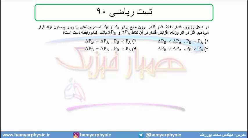جلسه 82 فیزیک دهم - فشار در شارهها 14 و تست ریاضی 90 - مدرس محمد پوررضا