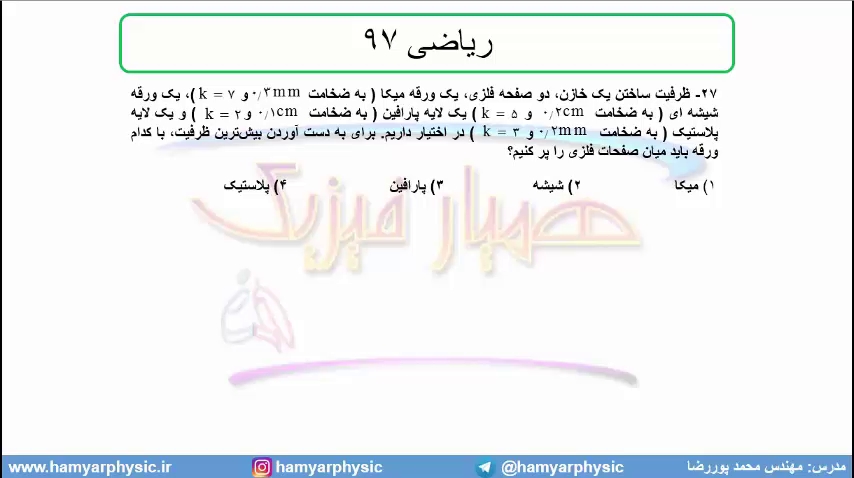 جلسه 75 فیزیک یازدهم - خازن 8 و تست ریاضی 97- مدرس محمد پوررضا