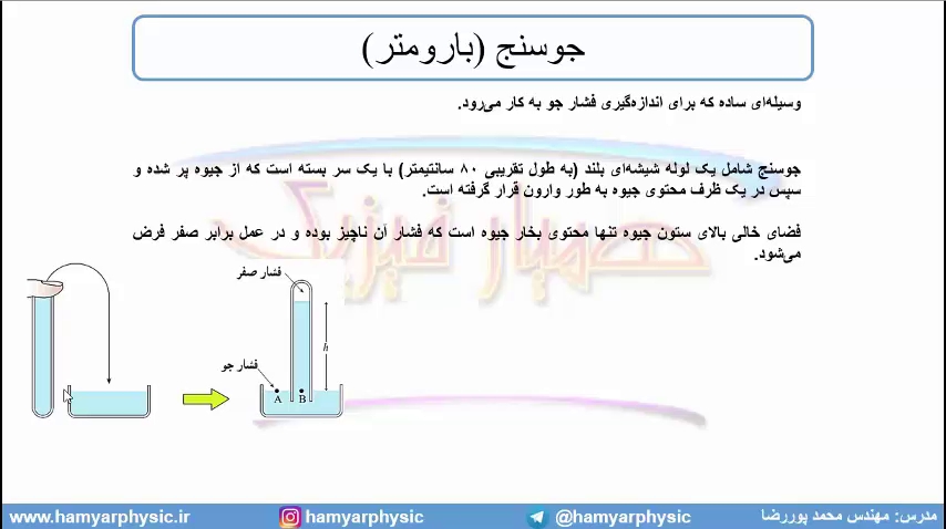 جلسه 74 فیزیک دهم - فشار در شارهها 6 و جو سنج - مدرس محمد پوررضا